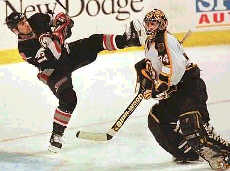 "Grabbar nu börjar vi värma målvakten med låga isskott!"